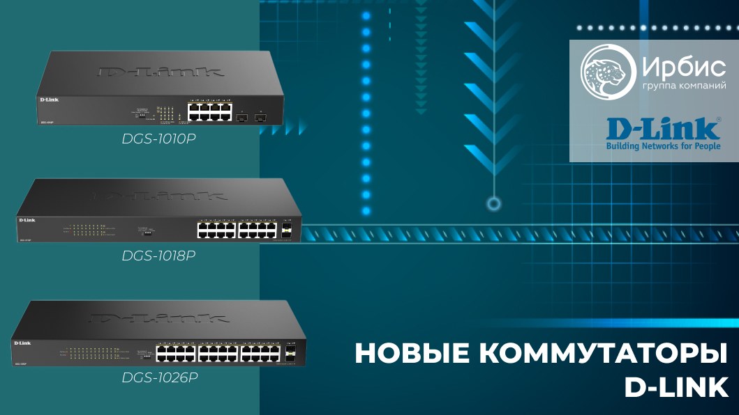 ГК Ирбис представляет новые конфигурируемые PoE-коммутаторы D-Link DGS-1026P, DGS-1018P и DGS-1010P.