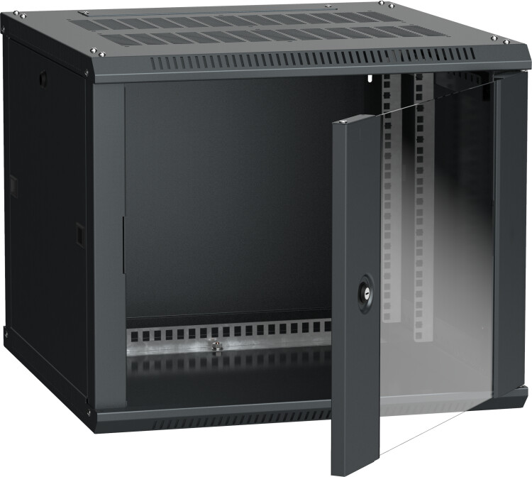 Шкаф настенный 19", 6U, 600х600мм, стекл. дверь, черный, LINEA W, ITK LWR5-06U66-GF