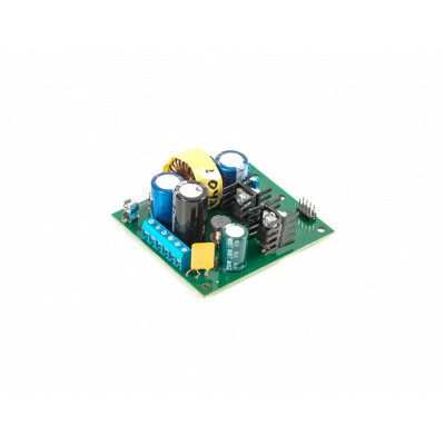 ПН-12-1,5 (встраиваемый модуль на печатной плате размером 80х70x40 мм) преобразует нестабилизированное входное напряжение от 10 до 50 В постоянного тока в выходное стабилизированное напряжение 12…15 В постоянного тока для питания нагрузки с током потребления до 1,5 А. При удалённом питании преобразователя от ИБП существует ограничение максимальной длины линии питания, зависящее от выходного напряжения ИБП, сечения проводов и суммарной мощности нагрузок.