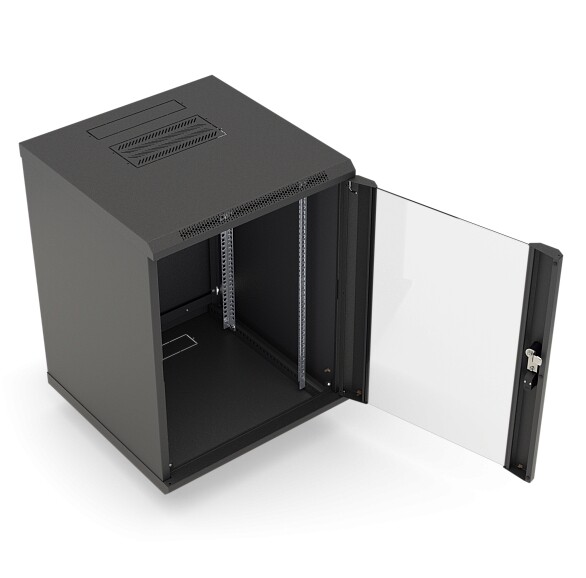 Шкаф WXD-1545-G-RAL9005 — настенное решение для размещения 19-дюймового оборудования в телекоммуникационных и IT-зонах. Высота 15U и глубина 450 мм позволяют собрать компактный узел связи, а стальной корпус рассчитан на нагрузку до 100 кг. Стеклянная дверь с замком под ключ обеспечивает контролируемый доступ и удобный визуальный осмотр оборудования.