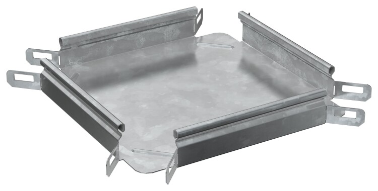 Крестовина предназначен для организации X-образного разветвления кабельной трассы в горизонтальной плоскости. Стыковка аксессуара с лотком осуществляется за счёт телескопического соединителя. Подходит для всех типов листовых лотков серии ESCA. Крышка на аксессуар заказывается отдельно. Аксессуар изготовлен из стали оцинкованной методом горячего погружения (защитный слой цинка не менее 55 мкм).