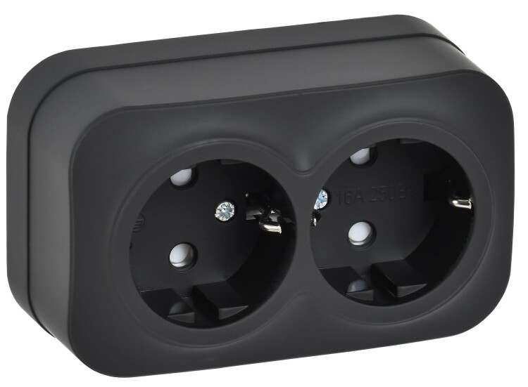 GLORY Розетка 2-местная для открытой установки с заземлением с защитными шторками 16А РСш22-3-ХЧм че