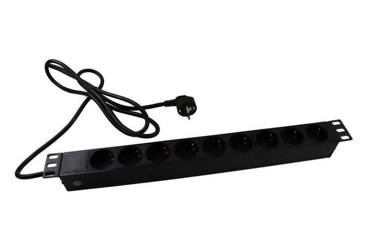 Прекрасно справляется с задачей по электроснабжению сетевого оборудования в шкафах и стойках, а также с требованием защиты от токов короткого замыкания и перенапряжения. Изготавливаются блоки розеток из высококачественных термостойких материалов и пластмасс, оснащаются в зависимости от модели выключателем со светоиндикацией, автоматом УЗО, кнопкой сброса при перенапряжении и соответствует российским и международным стандартам качества. Горизонтальные PDU соответствуют стандарту 19” (482,6 мм) и устанавливаются с помощью кронштейнов на 19” профиль, при этом положение кронштейнов можно менять.
