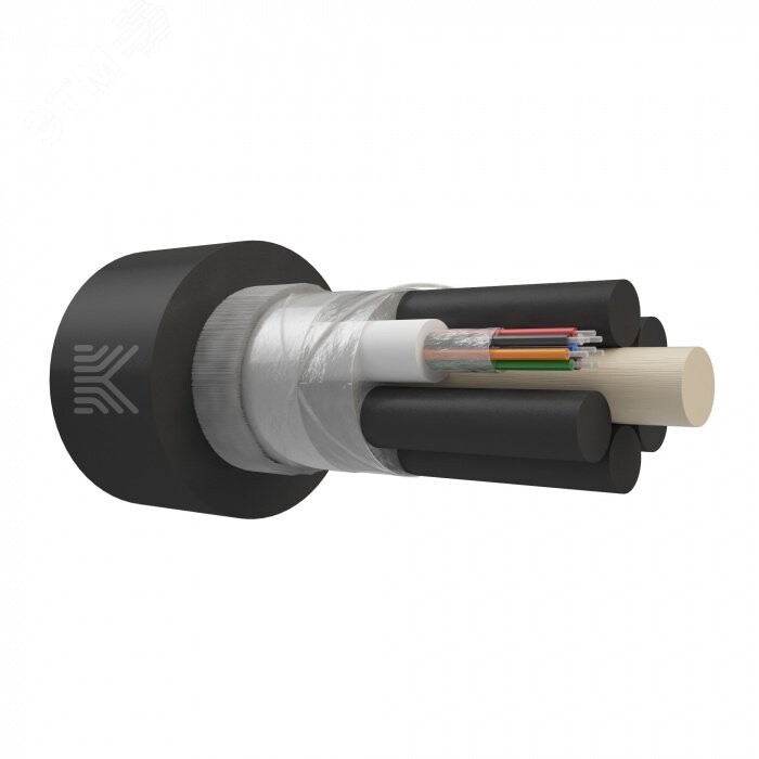 Кабель имеет оптический сердечник модульной конструкции, состоящий из центрального силового элемента в виде стеклопластикового прутка в полимерной оболочке (или без неё), вокруг которого скручены оптические модули (ОМ) и (при необходимости) кордельные заполнители из полиэтиленового стержня. Внутримодульное и межмодульное прострaнство заполнено гидрофобным заполнителем или другими водоблокирующими материалами по всей длине кабеля. Поверх сердечника наложена скрепляющая обмотка, полиэтилентерефталатная/полипропиленовая лента, периферийные силовые элементы из стеклонитей и наружная оболочка. Наружная оболочка из полиэтилена или безгалогенного компаунда, не распространяющего горение при групповой прокладке. Применяется для подвеса между опорами воздушных линий электропередач, контактной сети и железных дорог, а также между опорами освещения, опорами связи, зданиями и сооружениями. Используется в качестве магистрального кабеля. Поддерживает передачу данных на большие расстояния.