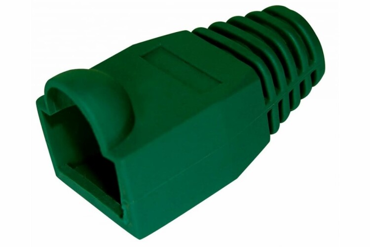 Колпачок RJ-45 зеленый REXANT предназначен для дополнительной защиты места соединения разъема RJ-45 (8P8C) и информационного кабеля при построении телефонных и компьютерных сетей. Защитный колпачок оберегает кабель от перегиба в месте соединения с разъемом, а также защелку коннектора от повреждения, что значительно увеличит срок службы готового шнура. Чаще всего он применяется с витой парой диаметром до 6 мм. Данный колпачок изготовлен из пожаростойкого и эластичного зеленого полипропилена и обладает высоким уровнем надежности при эксплуатации телекоммуникационного оборудования. Колпачок совсем не увеличивает габариты разъема, и позволяет использовать его в информационных шкафах с высокой плотностью портов. Использование цветных колпачков допускает возможность выделения определенных проводов, т.е. служит маркером кабеля.