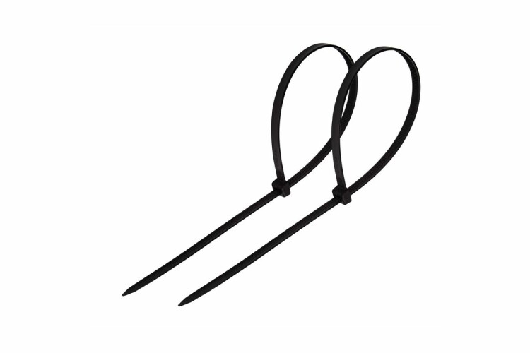 Хомут нейлоновый (кабельная стяжка) 400х7,6 мм чёрный REXANT предназначен для крепления или обвязки в жгут кабелей и проводов, крепления гибких гофротруб, а также других предметов к несущей поверхности или для соединения между собой. Такая стяжка используется при проведении электромонтажных работ, при монтаже структурированных кабельных систем, для бытовых нужд, а также в других отраслях народного хозяйства. Представляет собой гибкую полоску из нейлона высокой прочности (полиамид-6,6) с замком на конце. Полиамид-6,6 — кристаллизующийся конструкционный материал, имеющий высокую твердость и механическую прочность, отличающийся высокими электроизоляционными свойствами. Простой и удобный монтаж осуществляется вручную следующим образом: большим пальцем левой руки прижать замок к пучку, а правой рукой затягивайте петлю, либо с помощью специального инструмента REXANT арт.12-4521 или 12-4541 (вставить конец затяжки в замок и затянуть до полной фиксации пучка, после чего отрезать выступающую часть бандажа).