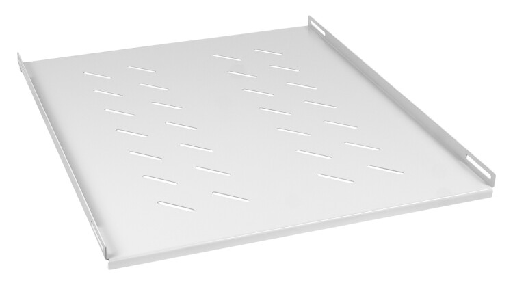 Усиленная стационарная полка четырехточечного крепления предназначена для установки в напольные шкафы Cabeus глубиной 800мм. Используется для размещения технологического оборудования, не имеющего стандартного 19” крепления. Полка имеет перфорацию, позволяющую охлаждать технологическое оборудование. Максимально нагрузка – 100 кг. Покрытие – порошковая ударопрочная краска, светло-серая (RAL7035). Толщина стали составляет 2 мм. Установка стационарной полки производится путем крепления на боковые поверхности 19” направляющих с помощью стандартного крепежа – квадратных гаек, винтов М6 и пластиковых шайб.