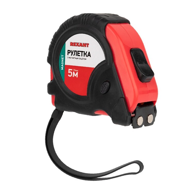 Измерительная рулетка REXANT Профи необходима при проведении измерительных работ в строительстве, хозяйстве, ландшафтных и геодезических исследованиях. Двухкомпонентный прорезиненный корпус, выполненный из ударопрочного пластика, не скользит в руках. Прочное полотно без изломов имеет глянцевое покрытие и обладает удобным зацепом с магнитами. Для удобства использования предусмотрены кнопки стопора и фиксации тормоза. На корпусе расположена клипса-зажим для фиксации рулетки на ремне, кармане или поясной сумке. Ремешок позволяет надевать инструмент на запястье, чтобы освободить руки для работы.