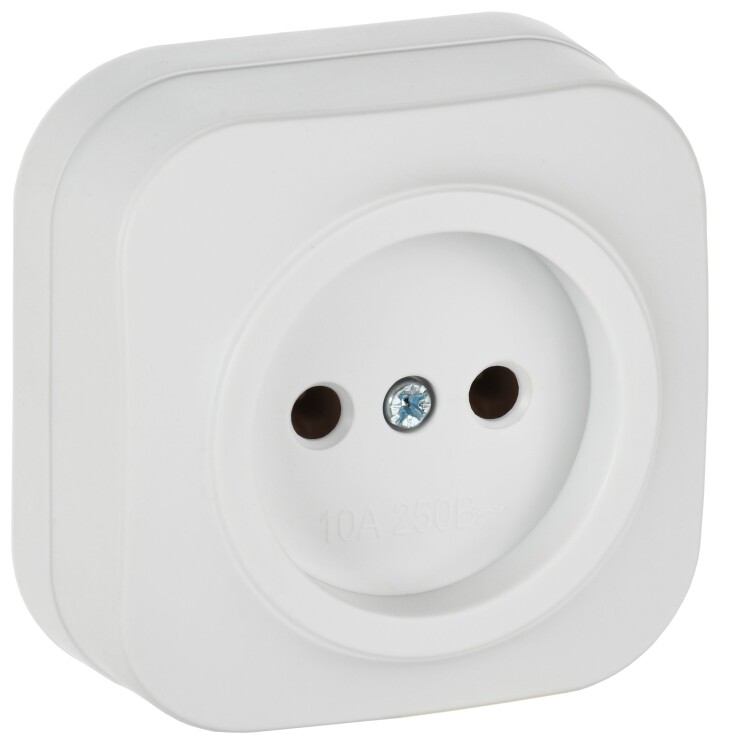 GLORY Розетка 1-местная для открытой установки без заземления без защитных шторок 10А РС20-2-ХБм бел