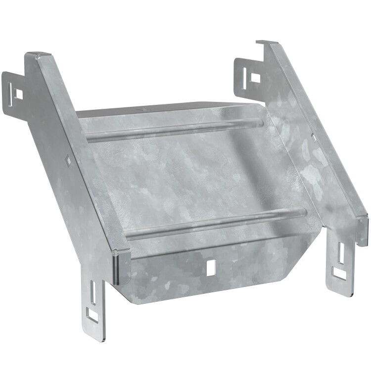 Поворот вертикальный внешний на 90° предназначен для организации поворота кабельной трассы в вертикальной плоскости. Стыковка аксессуара с лотком осуществляется за счёт телескопического соединителя. Подходит для всех типов листовых лотков серии ESCA. Крышка на аксессуар заказывается отдельно. Аксессуар изготовлен из стали оцинкованной методом горячего погружения (защитный слой цинка не менее 55 мкм).