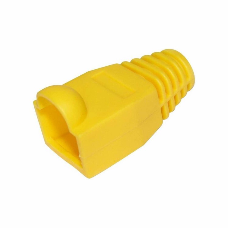 Колпачок RJ-45 желтый REXANT предназначен для дополнительной защиты места соединения разъема RJ-45 (8P8C) и информационного кабеля при построении телефонных и компьютерных сетей. Защитный колпачок оберегает кабель от перегиба в месте соединения с разъемом, а также защелку коннектора от повреждения, что значительно увеличит срок службы готового шнура. Чаще всего он применяться с витой парой диаметром до 6 мм. Данный колпачок изготовлен из пожаростойкого и эластичного желтого полипропилена и обладает высоким уровнем надежности при эксплуатации телекоммуникационного оборудования. Колпачок совсем не увеличивает габариты разъема, и позволяет использовать его в информационных шкафах с высокой плотностью портов. Использование цветных колпачков допускает возможность выделения определенных проводов, т.е. служит маркером кабеля.