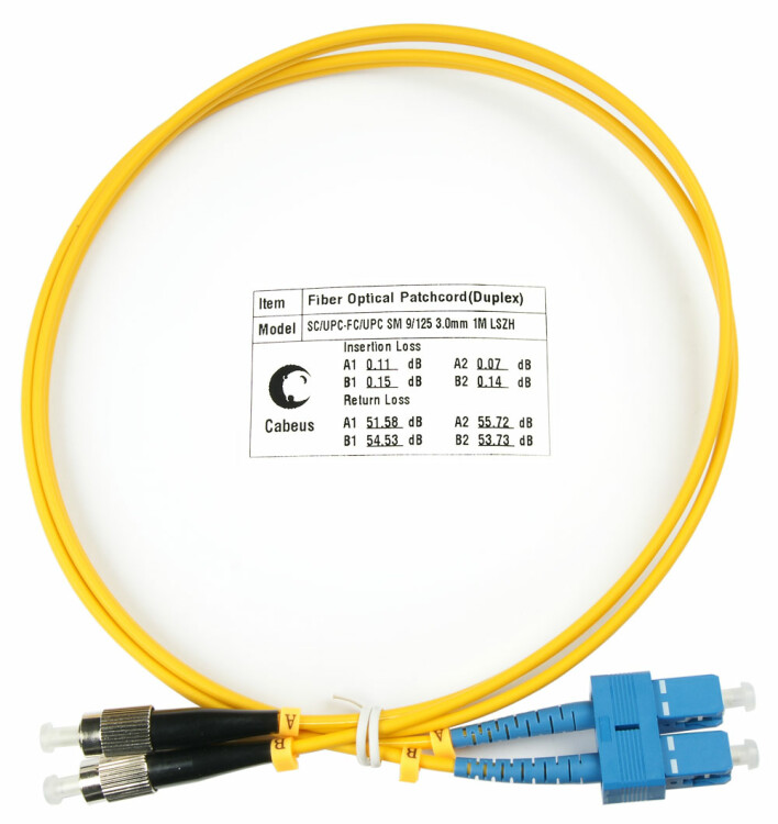 Переходной шнур (патч-корд) SC-FC 9/125 - это отрезок оптического кабеля c двумя волокнами (в буферном покрытии 3 мм) оконцованный с одной стороны оптическими коннекторами SC, с другой стороны коннекторами FC. Патч-корд применяется для коммутации активного оптического оборудования, а также обеспечивает соединение в распределительных устройствах (оптических кроссах и телекоммуникационных шкафах). Оптические патч-корды Cabeus производятся из качественных компонентов в соответствии с международными стандартами. Все изделия протестированы в заводских условиях. Патч-корд имеет маркировку полярности коннекторов, благодаря которой можно определить стороны входа и выхода светового сигнала. Каждый патч-корд поставляется в индивидуальной упаковке.