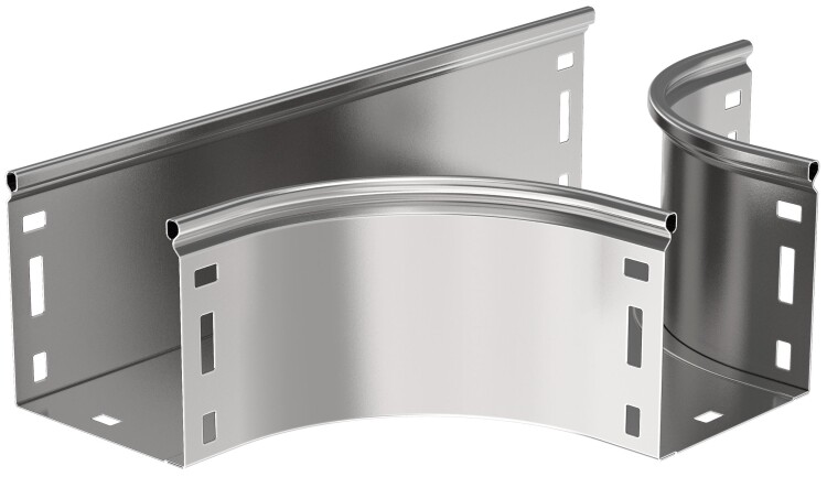 Разветвитель Т-образный плавный предназначен для организации Т-образного ответвления кабельной трассы. Крышка аксессуара в комплект не входит. Аксессуар изготовлен из стали горячего цинкования методом Сендзимира (защитный слой цинка не менее 10 мкм).