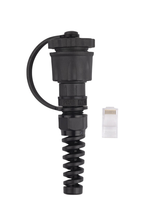 Hyperline PLUG-IE-8P8C-P-C5 Промышленный разъем RJ-45 (8P8C) под витую пару, IP67, категория 5e, с защитной крышкой