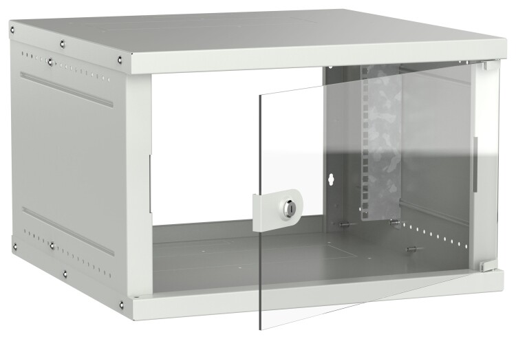 Шкаф настенный 19" 6U 600х600мм стеклянная дверь серый GENERICA