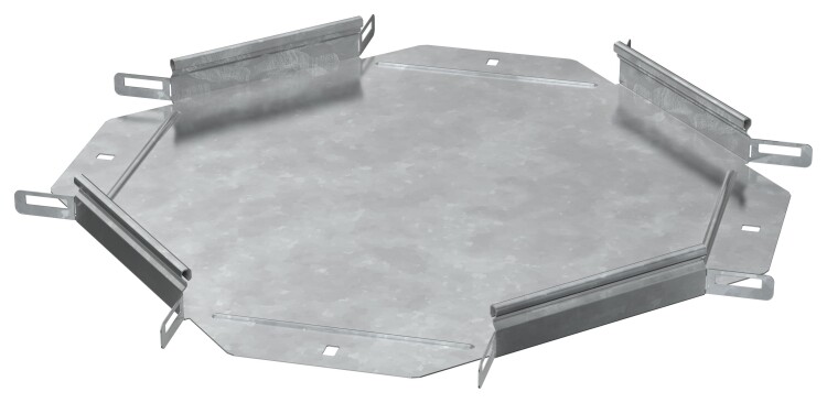 Крестовина предназначен для организации X-образного разветвления кабельной трассы в горизонтальной плоскости. Стыковка аксессуара с лотком осуществляется за счёт телескопического соединителя. Подходит для всех типов листовых лотков серии ESCA. Крышка на аксессуар заказывается отдельно. Аксессуар изготовлен из стали оцинкованной методом горячего погружения (защитный слой цинка не менее 55 мкм).