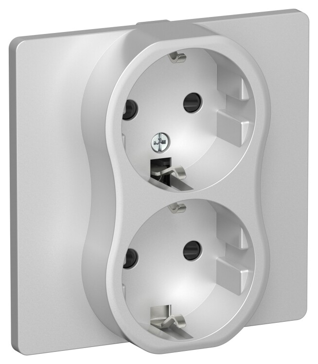 FLITE Розетка 2-местная с заземлением с защитными шторками 16А РСш12-0-К-ФлА алюминий IEK