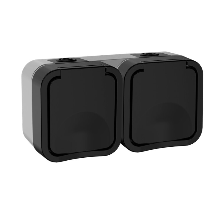 Розетка 2-местная горизонтальная, 16А, IP55, графит, IEK TS-R26-16-55-G-K53