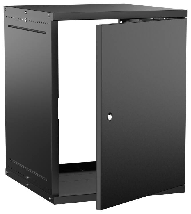Шкаф настенный 19" 15U 600х650мм металлическая дверь черный GENERICA