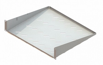 Консольная полка 2U переднего крепления на направляющие шкафов и стоек 19”. Предназначена для размещения малогабаритного оборудования, не имеющего стандартного 19” крепления. Полка имеет перфорацию, позволяющую охлаждать технологическое оборудование. Максимально разрешенная нагрузка -20 кг. Покрытие – порошковая ударопрочная краска, светло-серая (RAL7035). Толщина стали составляет 1,3 мм. Установка консольной полки производится путем крепления на направляющие 19” с помощью стандартного крепежа – квадратных гаек, винтов М6 и пластиковых шайб. Максимальная нагрузка: 20кг
