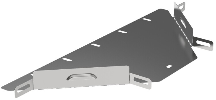 Отвод Т-образный горизонтальный предназначен для организации Т-образного или X-образного отвода кабельной трассы в горизонтальной плоскости. Аксессуар поставляется в плоском виде, имеет направляющую перфорацию для сгиба и сборки изделия перед установкой. Стыковка аксессуара с лотком осуществляется за счёт телескопического соединителя. Подходит для всех типов листовых лотков серии ESCA. Крышка на аксессуар заказывается отдельно. Аксессуар изготовлен из стали оцинкованной методом Сендзимира (защитный слой цинка не менее 5-10 мкм).