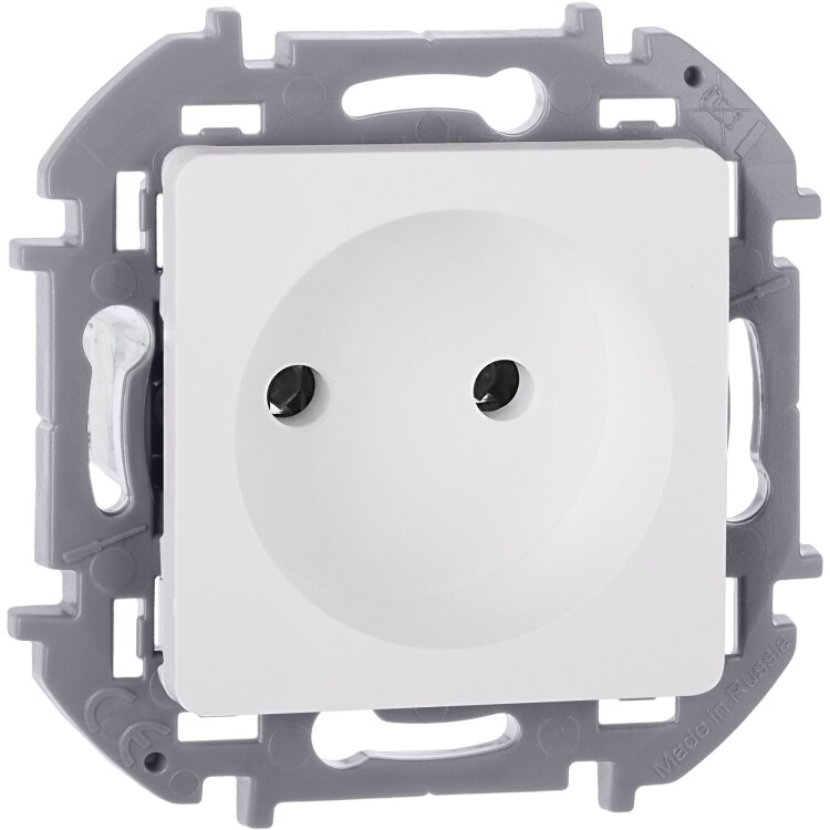 Розетка без заземления для скрытого монтажа Inspiria, цвет "Белый", максимальный ток 16А, напряжение ~250В, максимальная мощность 3680Вт, винтовые зажимы. Применяется для присоединения однофазных электрических потребителей к сети переменного тока в зданиях с проводкой без заземления (без защитного проводника).