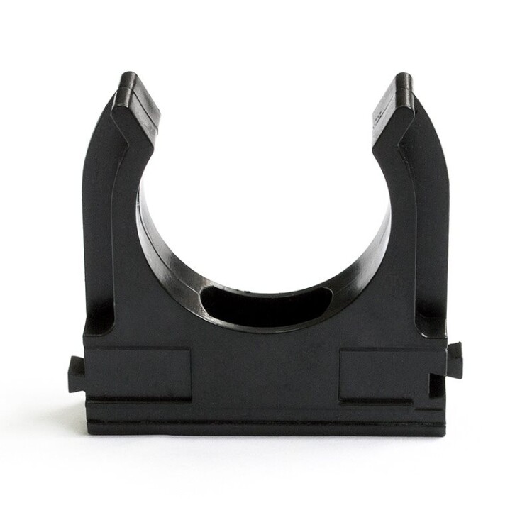 Крепеж-клипса применяется для крепления гофрированных и гладких труб к различным поверхностям. Имеет технологическое отверстие для саморезов/дюбелей. Оптимальная форма клипсы с грамотно расположенными ребрами жесткости обеспечивают надежный захват трубы и достаточную жесткость удержания в течении длительного времени.