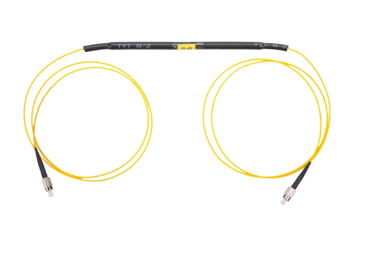 Предназначен для ослабления уровня мощности оптического сигнала в волоконно-оптических системах связи путём внесения фиксированного затухания в оптический тракт. Представляет собой оконцованный оптическими коннекторами (разъемами) одноволоконный кабель с наружным диаметром 2,0 мм. Для увеличения механических характеристик в структуре кабеля предусмотрены усиливающие арамидные нити под оболочкой. Возможен заказ аттенюатора любой длины. Аттенюаторы расфасованы в полиэтиленовую упаковку по одной штуке.