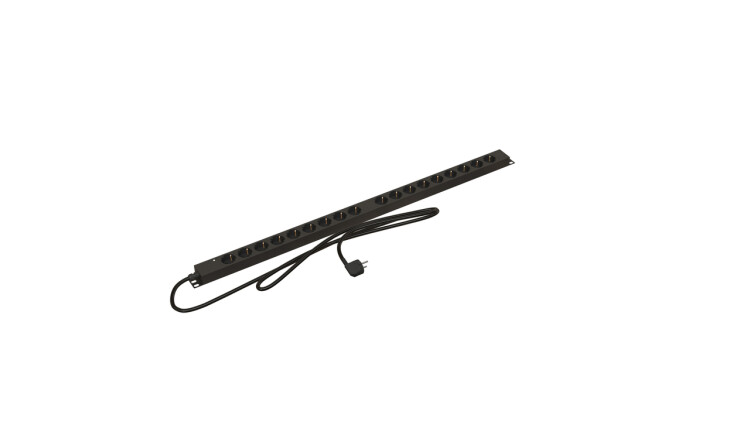Блок розеток вертик. 18 гнезд (Schuko), 16А, черный, кабель 2,5м, Hyperline SHE-18SH-I-2.5EU
