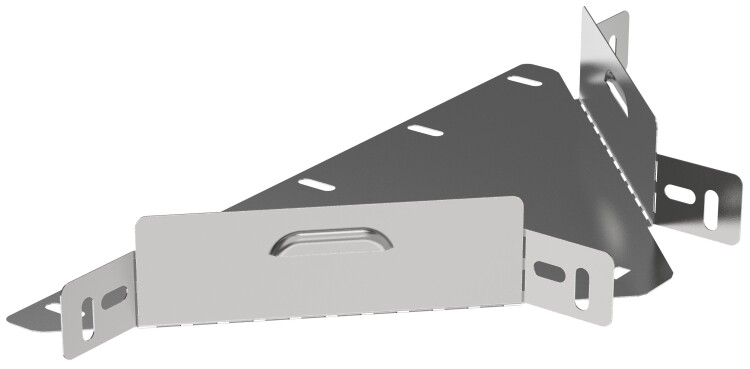 Отвод Т-образный горизонтальный предназначен для организации Т-образного или X-образного отвода кабельной трассы в горизонтальной плоскости. Аксессуар поставляется в плоском виде, имеет направляющую перфорацию для сгиба и сборки изделия перед установкой. Стыковка аксессуара с лотком осуществляется за счёт телескопического соединителя. Подходит для всех типов листовых лотков серии ESCA. Крышка на аксессуар заказывается отдельно. Аксессуар изготовлен из стали оцинкованной методом Сендзимира (защитный слой цинка не менее 5-10 мкм).