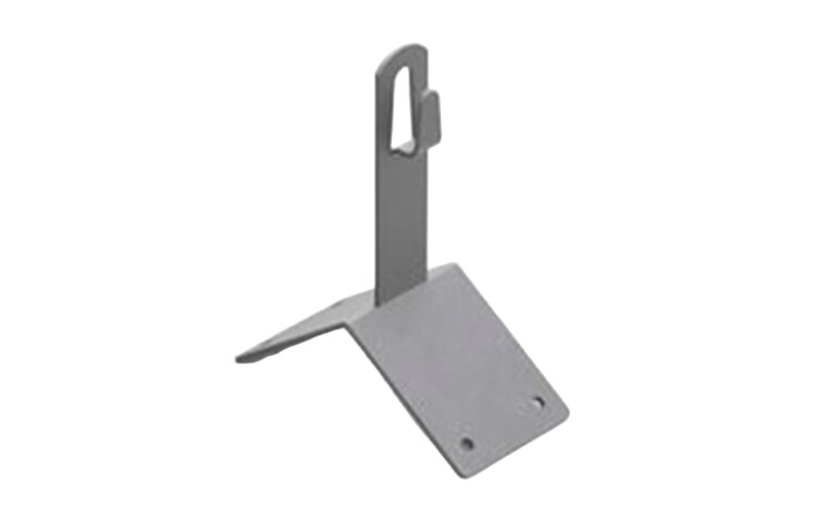 Угловой коньковый зажим применяется для фиксации молниеприемной сетки на остром коньке кровли при помощи саморезов. Проводник крепится безвинтовым зажимом при помощи плоскогубцев. Изготовлен из горячеоцинкованной стали.