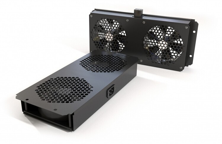 Hyperline TFAB-T2FR-RAL9004 Модуль вентиляторный потолочный с 2-мя вентиляторами для установки в шкафы серий TTB, TTR, TWB, TWL, с подшипниками и крепежными элементами, без кабеля питания, цвет черный (RAL 9004).