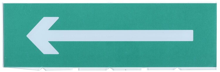 Сменное табло для охранно-пожарного оповещателя "Топаз". Состав: прозрачный пластик, бумага с зеленым фоном и указателем "Стрелка налево".