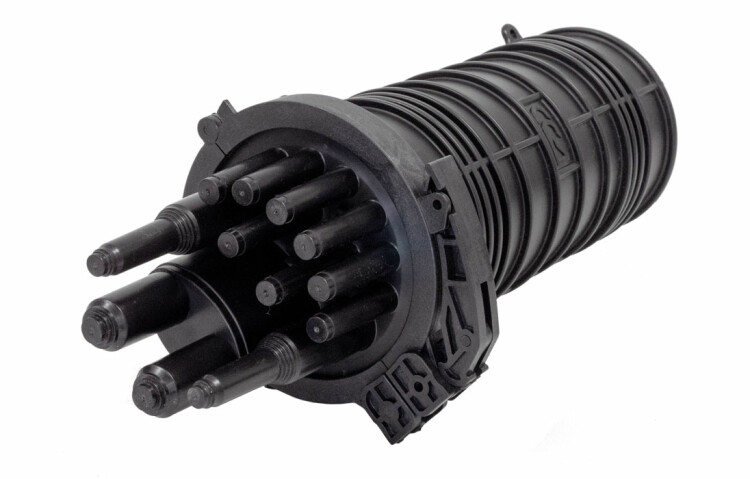 Предназначена для монтажа оптических кабелей (ОК), прокладываемых (подвешиваемых) на открытом воздухе, в кабельной канализации и внутри технических помещений (чердаках, подвалах). В том числе может применяться при строительстве сетей FTTH/PON. Выполнена из пластмассы и имеет пыле-брызгозащищенную тупиковую конструкцию- ввод ОК и дроп-кабелей производится с одной стороны. Корпус герметизируется уплотнительной прокладкой на стыке кожуха с оголовником. Фиксация кожуха и оголовника осуществляется пластмассовым хомутом с рычажным замком. Герметизация вводимых ОК и дроп-кабелей осуществляется термоусаживаемыми трубками. Особенностью муфты является наличие большого числа патрубков для ввода дроп-кабелей, которые герметизируются ТУТ, что позволяет размещать муфту как на опорах, так и в колодцах кабельной канализации.
