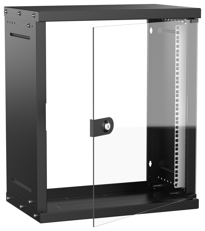 Шкаф настенный 19" 15U 550х350мм стеклянная дверь черный GENERICA
