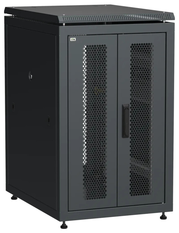 Шкаф напольный 19", 18U, 600х800мм, перед. дверь двуств. перфор., задн. перфор., черный, LINEA N, ITK LN05-18U68-2P