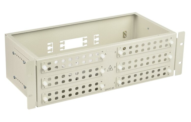 Предназначен для установки в стойки 19'', 23'', ETSI. Крепление кабеля по оболочке осуществляется металлическим хомутом и/или нейлоновыми стяжками, на Т-образном лепестке. Центральный силовой элемент крепится при помощи металлической скобы. Сменные планки на 8, 12 или 16 отверстий обеспечивают установку адаптеров-розеток различных типов: FC, SC, ST, дуплекс LC. Для кроссов данной серии имеются также сменные планки на 8, 12 и 16 дуплексных адаптеров SC. Особенности: возможность изменения положения крепежных кронштейнов для регулирования глубины установки кросса в стойке; возможность ввода и крепежа в кроссах претерминированных кабелей; надежная фиксация наружной оболочки кабеля металлическими винтовыми хомутами; возможность ввода кабелей со всех направлений, благодаря продольно расположенному кабельному вводу. цвет корпуса RAL7035 (серый)
