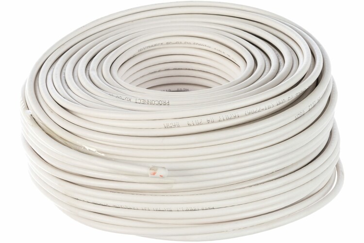 Кабель RG-6U+Cu, 48%, 75 Ом, 100м, белый PROCONNECT 01-2206 - кабель коаксиальный радиочастотный со вспененной полиэтиленовой изоляцией в ПВХ оболочке. Является самым распространенным решением для подключения внутренних и межблочных соединений общепромышленных и бытовых радиотехнических устройств, для подключения систем телевидения, а также для подключения видеокамер наружного и внутреннего наблюдения.