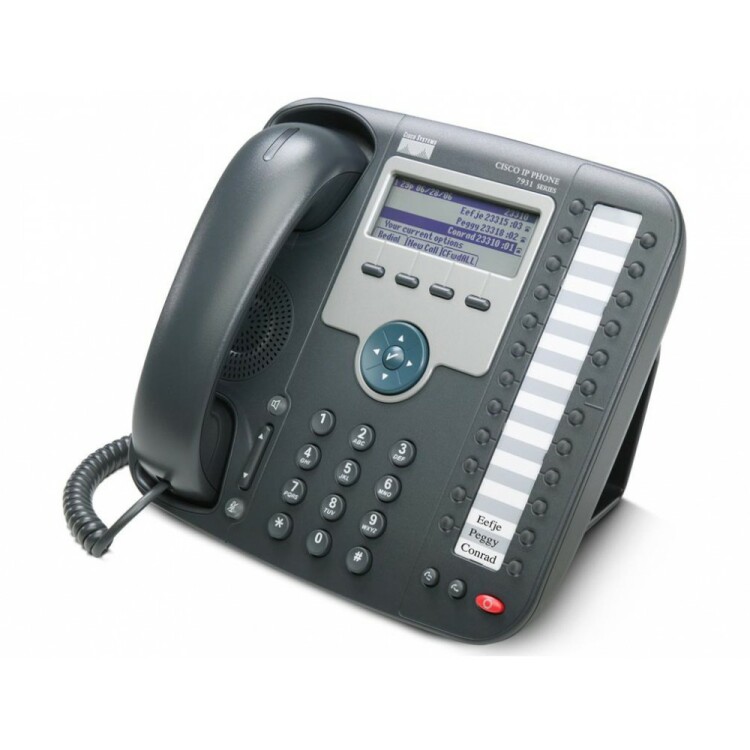 IP телефон Cisco IP Phone CP-7931G (аналог телефона Cisco 7911) на 24 линии SIPSCCP с 24-мя подсвеченными клавишами линий и четырьмя интерактивными программируемыми клавишами, обеспечивающими доступ к функциям обработки вызовов IP-телефон Cisco 7931G идеально подойдет для секретарей малых офисов, сотрудников офисов, розничных продаж генерирующих средние объемы телефонного трафика и имеющих специфические требования к телефонии – быстрый доступ к линиям или набору номеров. IP-телефон Cisco 7931G имеет 24 программируемые клавиши для быстрого доступа к линиям и быстрому набору номеров. Специальные клавиши удержания вызова, повторного набора и перевода вызова облегчают процесс обработки вызовов в среде розничной торговли. IP телефон Cisco 7931G имеет подсвечиваемые клавиши отключения звука, включения спикерфона. Дисплей с белой подсветкой улучшает отображение информации, позволяет воспользоваться всеми преимуществами XML-служб.