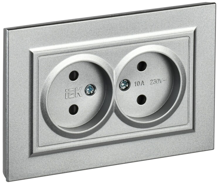 BRITE Розетка 2-местная без заземления с защитными шторками 10А в сборе РСш12-2-БрА алюминий IEK