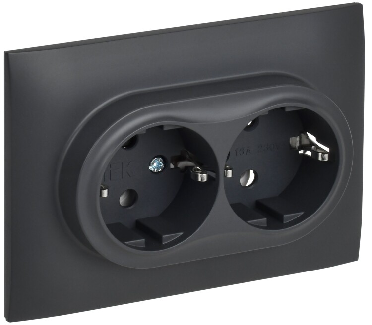SKANDY Розетка 2-местная с заземлением без защитных шторок 16А в сборе SK-R08T титан IEK