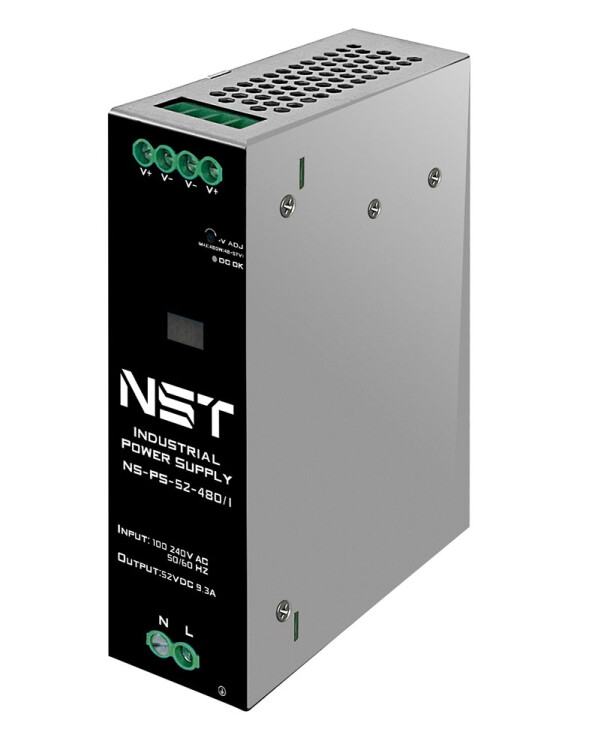 Промышленный блок питания DC52V, 480W. Выходной ток: до 9,2A. Регулировка выходного напряжения в диапазоне DC50-57V Диапазон входных напряжений: AC100-265V. Цифровой индикатор выходного напряжения и тока. Защита от короткого замыкания, перенапряжения и перегрузки. Конвекционная система охлаждения. Монтаж на DIN-рейку. Размеры (ШxВxГ): 40x158x125мм. Рабочая температура: -40...+80°C.