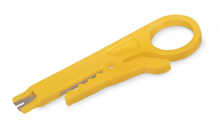 Устройство для зачистки и разделки витой пары, 110 тип. Применение: Снятие внешней оболочки и изоляции проводников Заделка модулей KJ с IDC-контактами Заделка кросс-панелей 110 типа