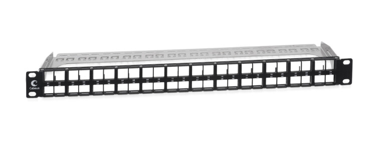 Коммутационные панели (патч-панели) предназначены для терминирования на них кабелей различных подсистем СКС и для коммутации отдельных элементов сети друг с другом при помощи коммутационных шнуров. Модульная патч-панель Cabeus выполнена в 19” формате высотой 1U и предназначена для установки в телекоммуникационные шкафы и стойки. Используется для установки 48 экранированных модулей типа Keystone. Модульные патч-панели обеспечивают максимальную гибкость при эксплуатации сетей, позволяя легко и быстро переконфигурировать систему соединений под индивидуальные потребности.