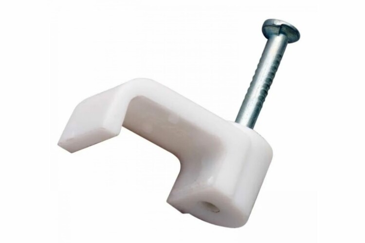Высококачественный плоский крепеж кабеля REXANT представляет собой П-образную пластиковую скобу, выполненную из качественного пластика и идущую в комплектации с гвоздём из закаленного металла, при помощи которого данная скоба крепит к стенам, потолкам и несущим конструкциям кабели, провода.