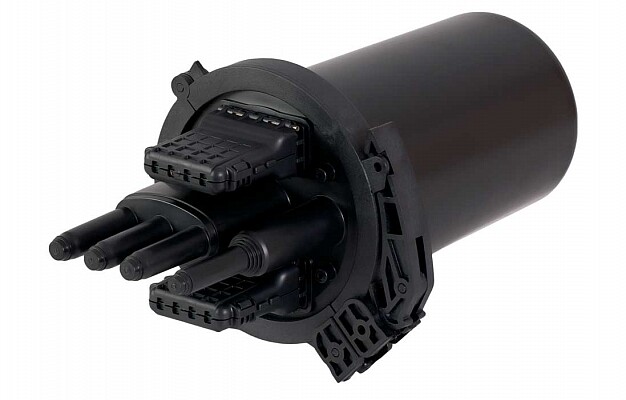 Тупиковая муфта МКО-Х7 предназначена для монтажа подвесного магистрального кабеля с абонентскими ответвлениями самонесущих дроп-кабелей. Особенностью муфт линейки МКО-Х7 является подключение абонентов снаружи муфты, посредством отдельного гермоввода, в который можно установить адаптеры типа SC или LC. Способ герметизации корпуса с оголовником механический. Осуществляется при помощи эластичной кольцевой прокладки и армированного пластикового хомута с самозатягивающимся замком. Замок хомута сконструирован таким образом, что при открывании защелка трансформируется в рычаг, обеспечивающий легкое снятие хомута с муфты. Ввод подвесного ОК, крепление и герметизация осуществляется с помощью трубок ТУТ. Ввод абонентских дроп-кабелей осуществляется с помощью адаптеров (гермовводов) на оголовнике, отверстия в которых позволяют вводить в муфту дроп-кабели с разъемами SC типа. Герметизация достигается с помощью эластичного геля.