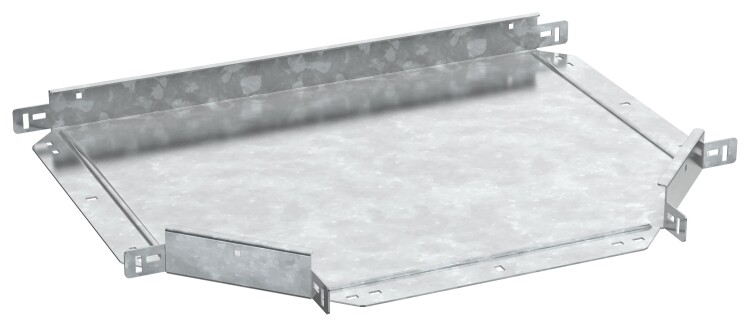 Разветвитель Т-образный горизонтальный предназначен для организации Т-образного ответвления кабельной трассы в горизонтальной плоскости. Стыковка аксессуара с лотком осуществляется за счёт телескопического соединителя. Подходит для всех типов листовых лотков серии ESCA. Крышка на аксессуар заказывается отдельно. Аксессуар изготовлен из стали оцинкованной методом горячего погружения (защитный слой цинка не менее 55 мкм).