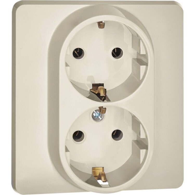 Розетка двойная с заземлением для скрытого монтажа Inspiria, цвет "Слоновая кость", максимальный ток 16А, напряжение ~250В, максимальная мощность 3680Вт, винтовые зажимы. Применяется для присоединения однофазных электрических потребителей к сети переменного тока в зданиях с проводкой с заземлением (с защитным проводником). Позволяет компактно разместить две розетки в одном установочном месте.
