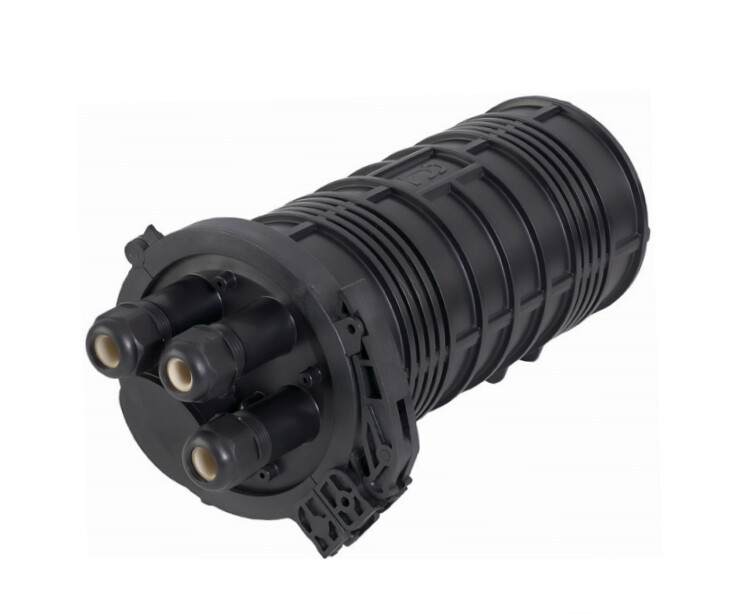 Тупиковая муфта МТОК-Р6 предназначена для монтажа подвесных самонесущих ОК, оптических кабелей с вынесенным силовым элементом типа «8», а также городских кабелей любых конструкций. В муфте предусмотрен овальный ввод для транзитной петли оптических модулей без разрезания. Выкладка петли модулей осуществляется на лотке с противоположной стороны от кассет. Способ герметизации корпуса с оголовником механический. Осуществляется при помощи эластичной кольцевой прокладки и армированного пластикового хомута с самозатягивающимся замком. Замок хомута сконструирован таким образом, что при открывании защелка трансформируется в рычаг, обеспечивающий легкое снятие хомута с муфты. Ввод кабеля, крепление и герметизация осуществляется с помощью резьбовых фитингов, отлитых непосредственно на оголовнике муфты. Муфта имеет три круглых патрубка с фитингами и один овальный, герметизация вводимых в который кабелей осуществляется также механическим способом.