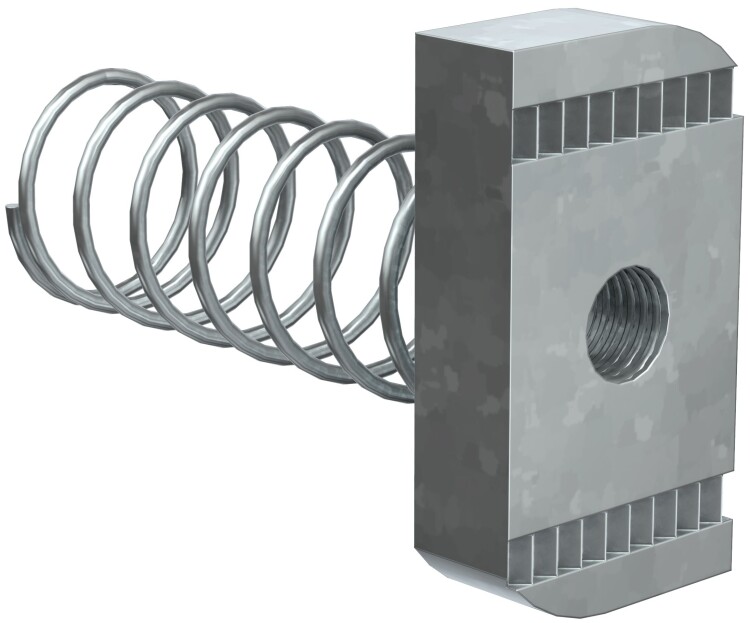 Гайка канальная с удлиненной пружиной предназначена для крепления элементов STRUT-системы между собой, а также кабельных лотков к STRUT-консолям. Используется с профилем сечения 41х41.